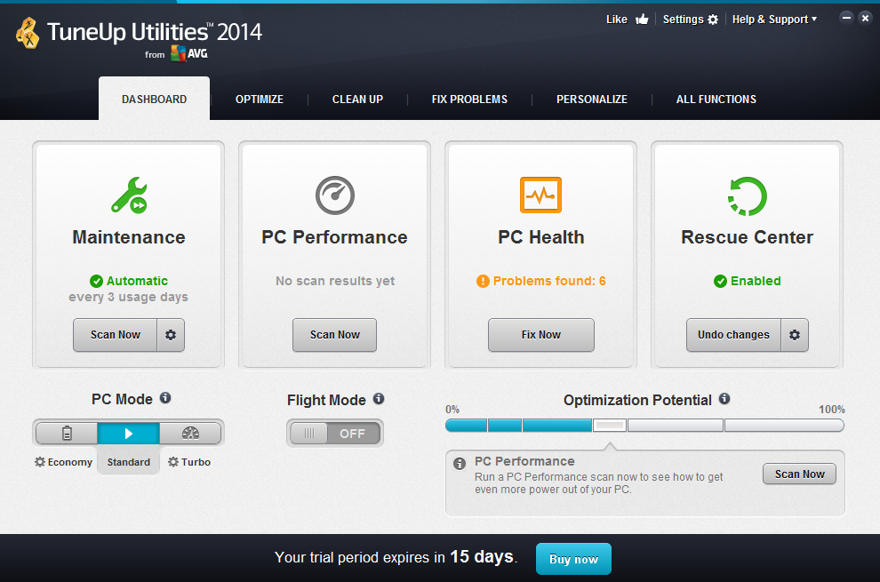 เข้าไปดาวโหลดโปรแกรมได้ที่นี่ TuneUp Utilities ทดลองใช้ฟรี 15 วัน เมื่อดาวโหลดและติดตั้งเสร็จแล้ว หน้าตาการใช้งานก็ไม่ค่อยยุ่งยากสักเท่าไรเริ่มแรกเลยให้ตั้งค่า PC Performance